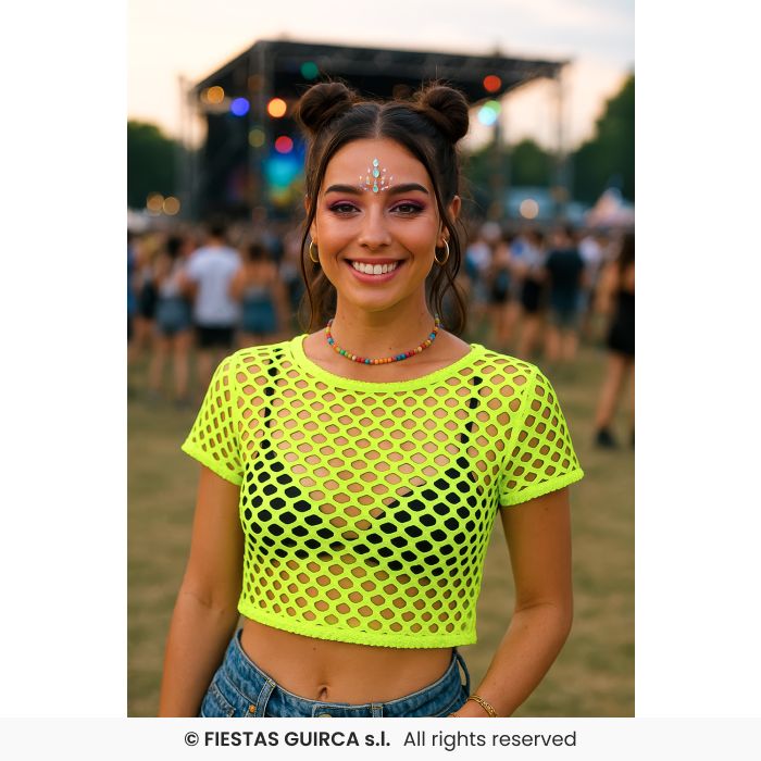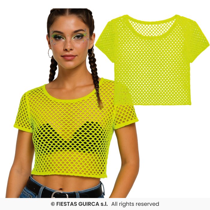 Camiseta de rejilla de color amarillo neón. Talla única.