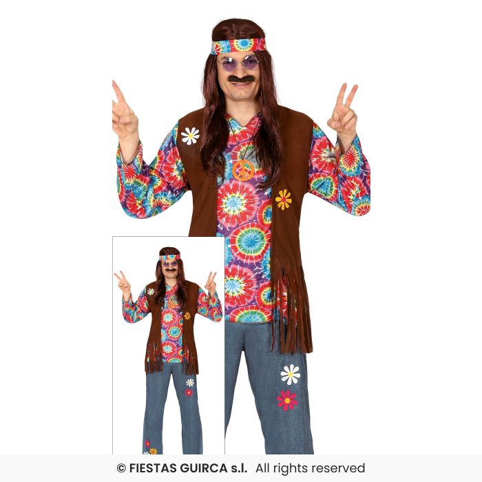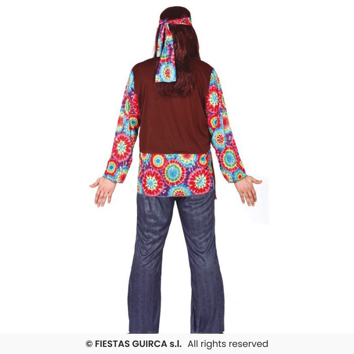 Disfraz de hippie para hombre, incluye camiseta, chaleco, pantalón, cinta para la cabeza.