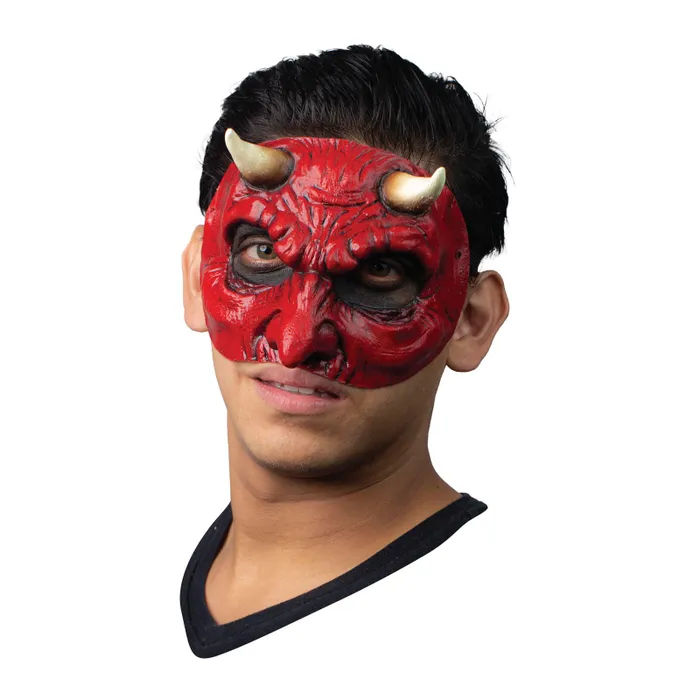Mascara de látex de diablo en rojo.