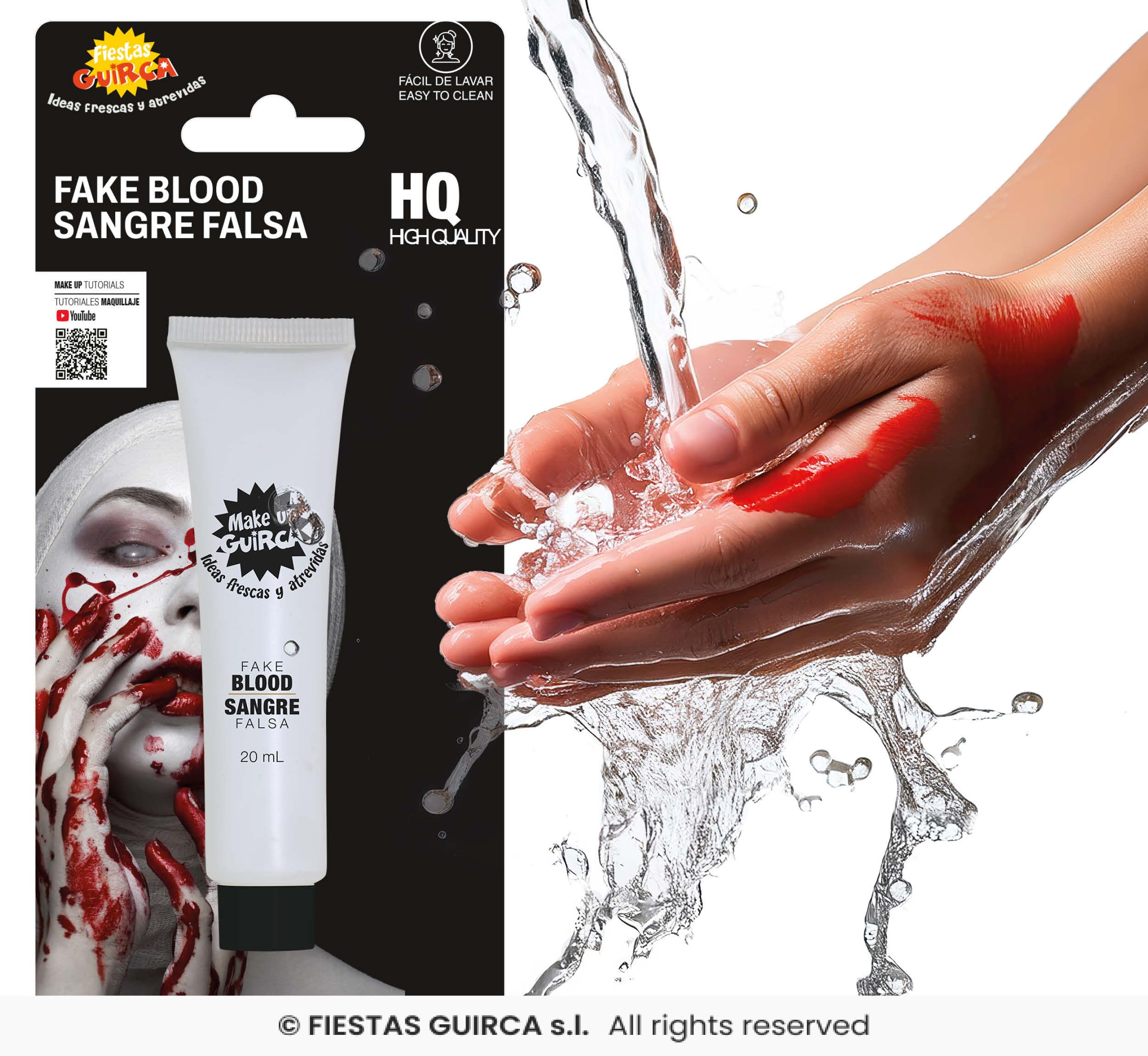 La Sangre ficticia lavable. Es un fluido viscoso con una textura y aspecto muy similares a la sangre y que se utiliza para acabar de caracterizar heridas.
